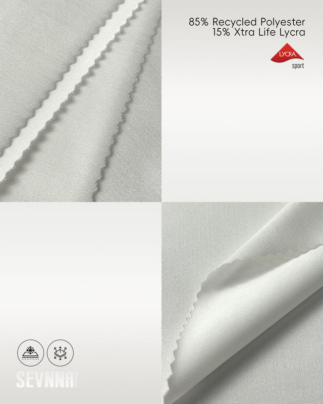 Dzięki składowi 85% poliestru z recyklingu i 15% Xtra Life Lycra, te elastyczne tkaniny lycra z przędzy są nie tylko przyjazne dla środowiska, ale także trwałe. Materiał znany jest z tego, że zachowuje swój kształt i kolor nawet po wielokrotnym praniu, co czyni go niezawodnym wyborem dla projektantów odzieży sportowej.